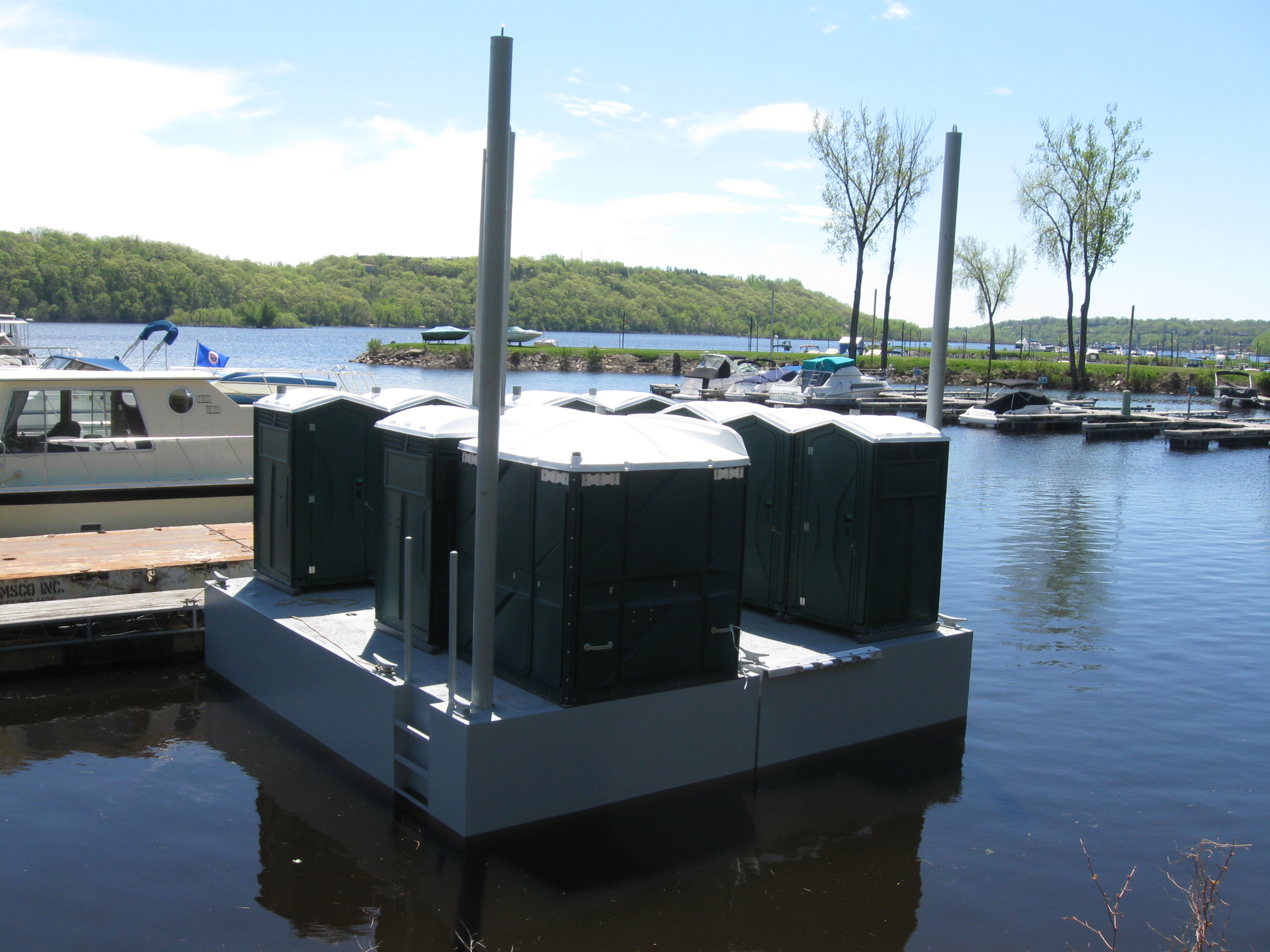 Construct and install floating restrooms for visitors, meeting environmental and accessibility needs.